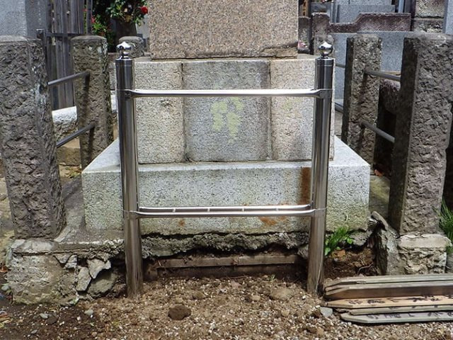 ステンレス製の塔婆立をコンクリートで固めて設置しました。