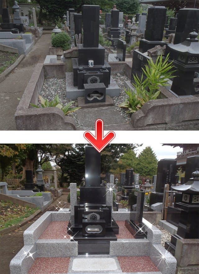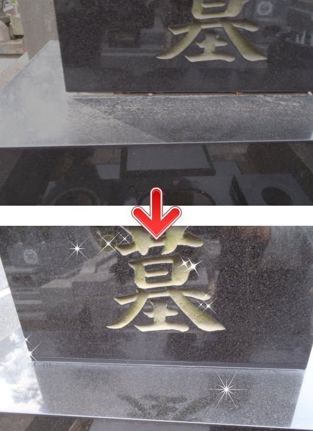 風化した墓石も再研磨すると新品のような光沢がでます。外柵の修理時に墓石を外す場合に検討すると良いでしょう。