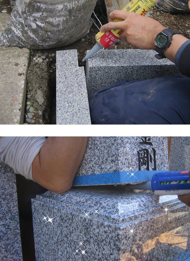 石と石のつなぎ目に塗られたセメント目地は風化で劣化し剥離します。定期的に修理をすることで墓石がきれいに保たれます。