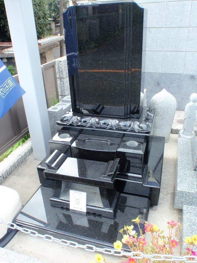 小面積用の丘カロートのお墓。外柵にはインド産の白御影石、墓石にはインド産の黒御影を使用したこだわりのお墓です。