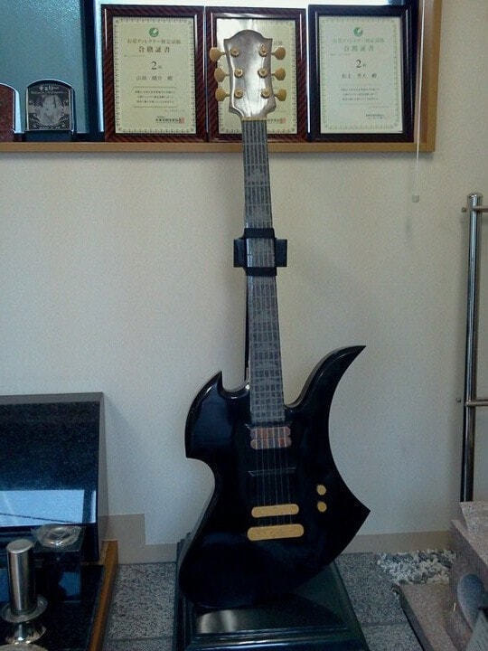 X-JAPAN HIDEさんのギターモデルを石で製作。当店で展示中。