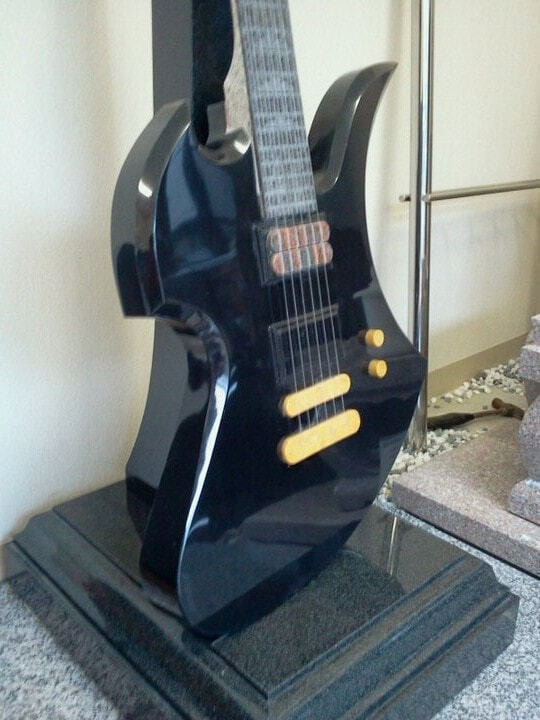 X-JAPAN HIDEさんのギターモデル、黒御影石で制作し、弦までサンドブラストで表現しています。