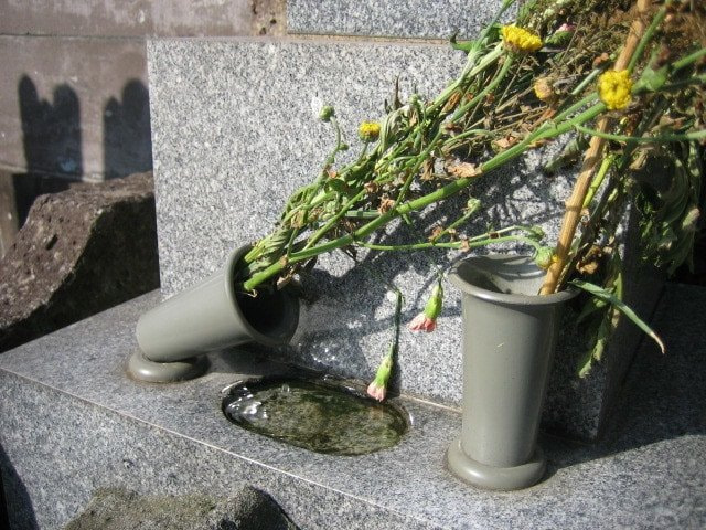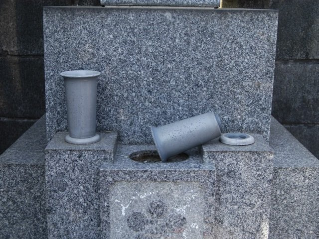 古いお墓にはプラスティック製や陶器製のお花立が使われていることが多く、長年使用しているとねじ山が壊れてお花の重さでも倒れることがあります。