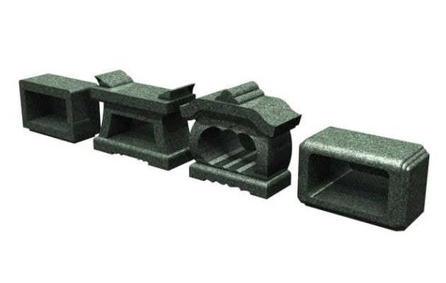 【香炉】以前はコンクリート、モルタル系の素材で造られた香炉が多く使用されてきました。耐久性は低いので20年程度でボロボロになってきます。最近では中国産の石材が廉価となり、硬いみかげ石で造ることが一般的です。香炉は墓石、石塔に使用されている石材と同じような色合い、素材を選ぶと一体感があり美観が良いでしょう。
