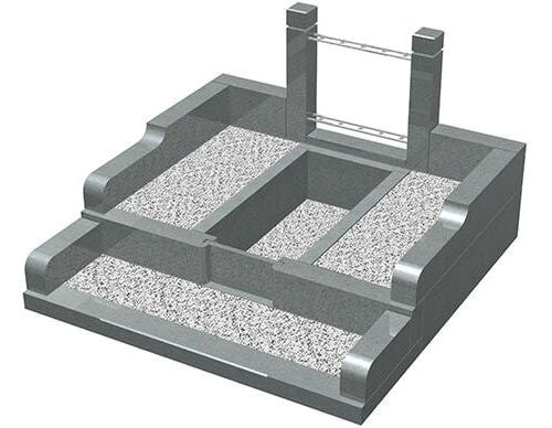 外柵の重量は外柵と墓石等の石材と土を含めて計算をすると大変な重さになります。この重さを支える役割をするのがコンクリート基礎であります。見えない箇所ですがこの基礎が外柵や墓石の重量に十分に耐えられるように計算されたコンクリート基礎でなければ沈下による傾きや沈みこみがおこり、後々大変な額の修理代がかかってしまいます。